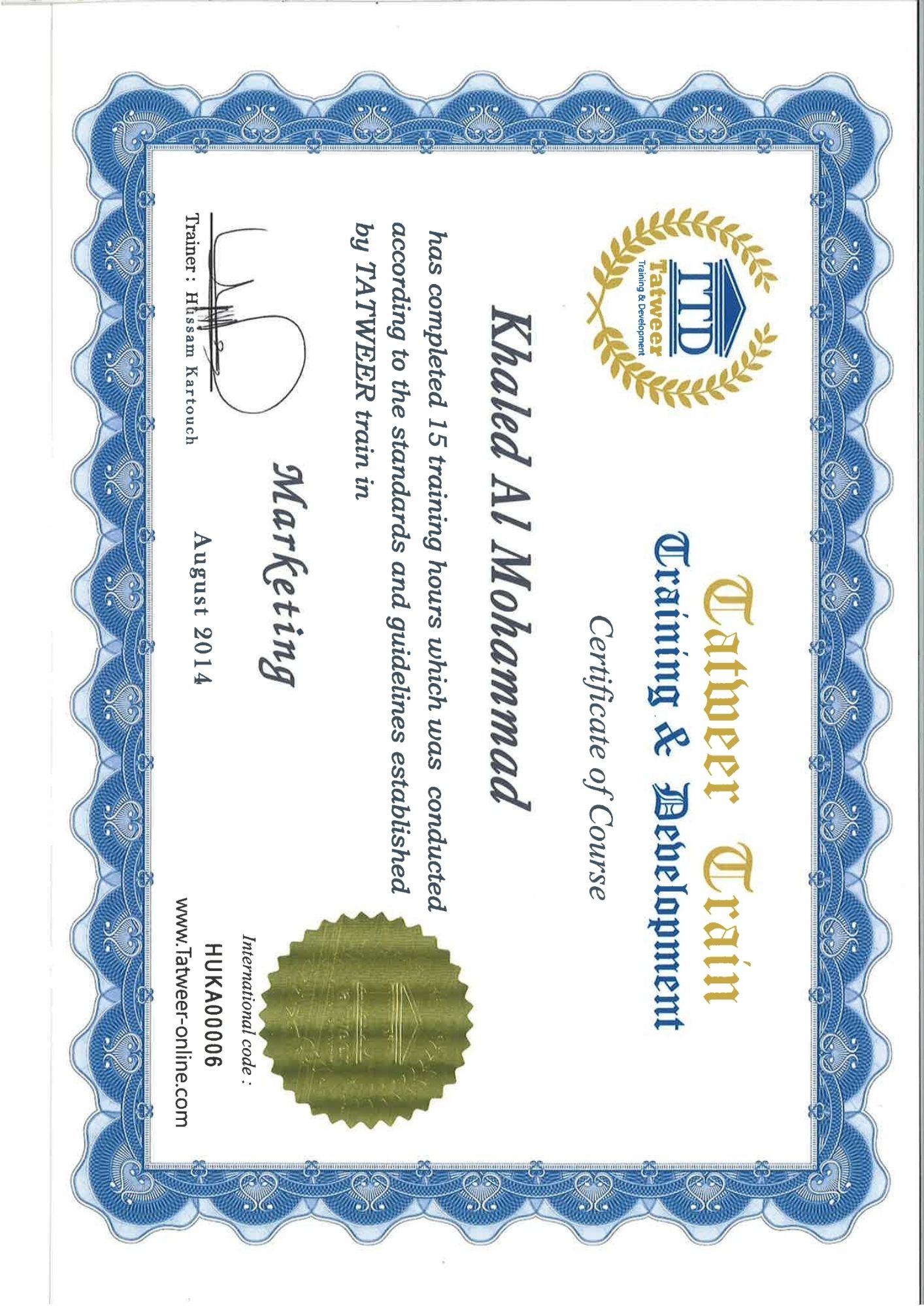 • I hold multiple international certifications in marketing and business development training.